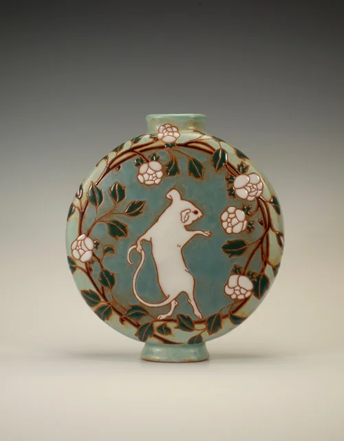 From a young age, Chloe watched as Cory hand built and decorated her pieces with scenes of vibrant nasturtiums, inquisitive owls, chatty birds on small branches, textured leaves and flowers, and very cheery dancing rats